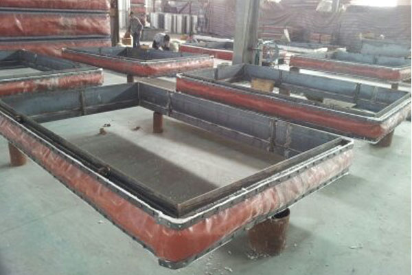非金属膨胀节由非金属蒙皮、保温隔热部分、金属法兰、筋板、螺栓和不锈钢网、陶瓷纤维绳或枕形密封材料等组成,蒙皮由耐温橡胶加玻璃布压制而成。不同部位的非金属膨胀节内部结构还有差异,例如在蒙皮的内侧还有一层聚四氟乙稀隔热膜,保温部分由硅酸铝耐火纤维毡或岩棉外包陶瓷纤维布组成保温被、隔热部分由硅酸铝耐火纤维毡外包玻璃陶瓷纤维布组成隔热被。